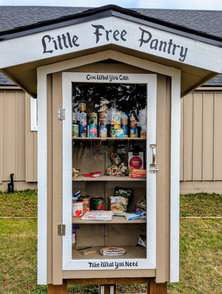 We are proud to host the Little Free Pantry on our property.